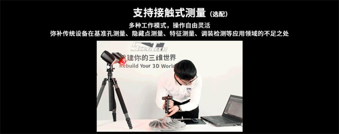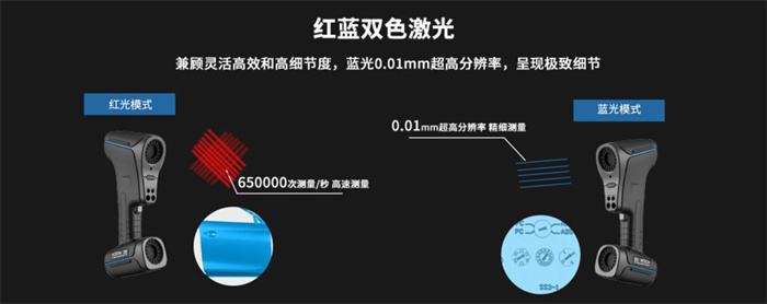 KSCAN复合式三维扫描仪,同时具备全局摄影测量、红色激光快速扫描和蓝色激光精细扫描三种模式,不仅具有远超其它激光三维扫描仪的细节捕捉能力,同时内置的摄影测量系统模块极大的扩展了仪器所支持的最大扫描尺寸和扫描精度,产品融合了思看科技红蓝双色激光和全局式三维测量两项全球首创的专利技术,重新定义了便携式三维扫描仪,是一款真正应用较广的专业级3D扫描仪。