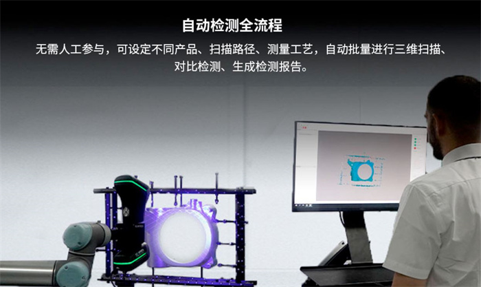 AutoScan-K系列自动化三维扫描系统,采用机器视觉技术,能精准控制机器人的运行轨迹,无接触无损伤。在保证极高准确性的同时,能高效执行在线批量扫描检测任务,24小时不间断工作,帮助企业降低制造成本,缩短产品上市周期,提高收益回报率。AutoScan-K系列配有多种个性化工作模式,可充分满足不同工业场景的测量需求。