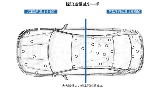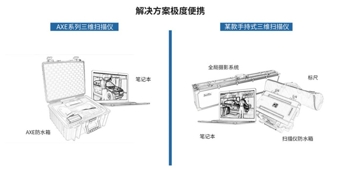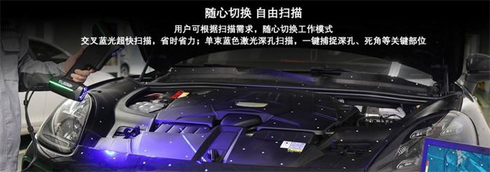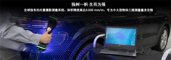 AXE系列三维扫描仪是思看又一款全球首创的手持式三维扫描仪。AXE系列除了具备其他手持式激光三维扫描仪的一切特性和功能,比较大的突破在于颠覆了中大型物体测量的方式。AXE无须借助任何设备,即可完成中大型物体的高精度扫描,单机体积精度远超其他手持式三维扫描仪,双倍的扫描面幅大大提升三维扫描速度。