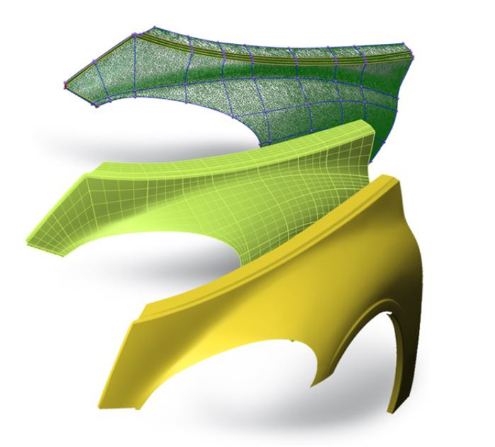功能特点 1、曲面建模--创建CAD友好的自由曲面 PolyWorks|Modeler提出一种直观的曲面生成方法,首先在三角化模型上放置曲线,然后自动相交,生成四边或N边NURBS面片,使用NURBS面片控制NURBS曲面连续网格的拟合。拟合好的曲面可以输出到你喜欢的CAD/CAM程序中去做进一步的外观曲面处理。